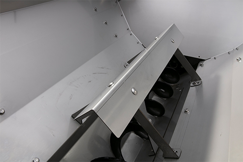 Baffle that attaches within the tub that helps to keep material off of the HELIXX system to help maximize flow of compacted materials.