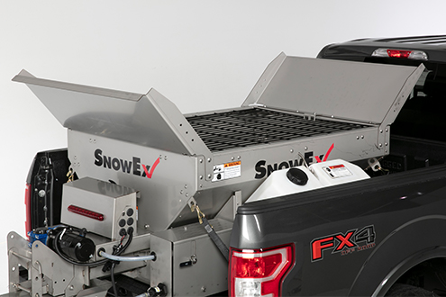 Hopper spreaders require bolting to the truck frame for proper operator safety.